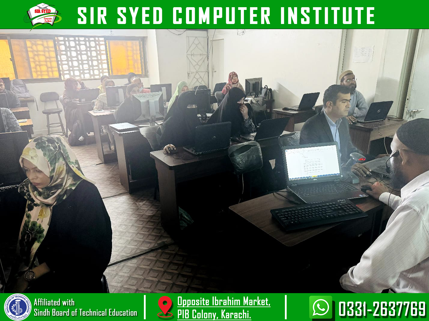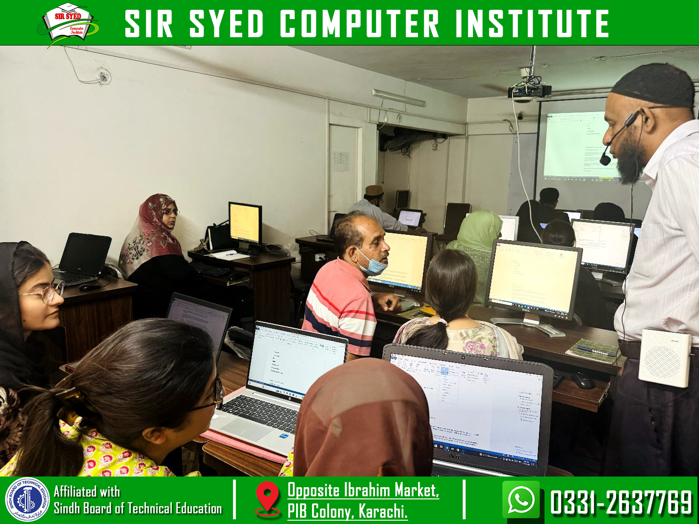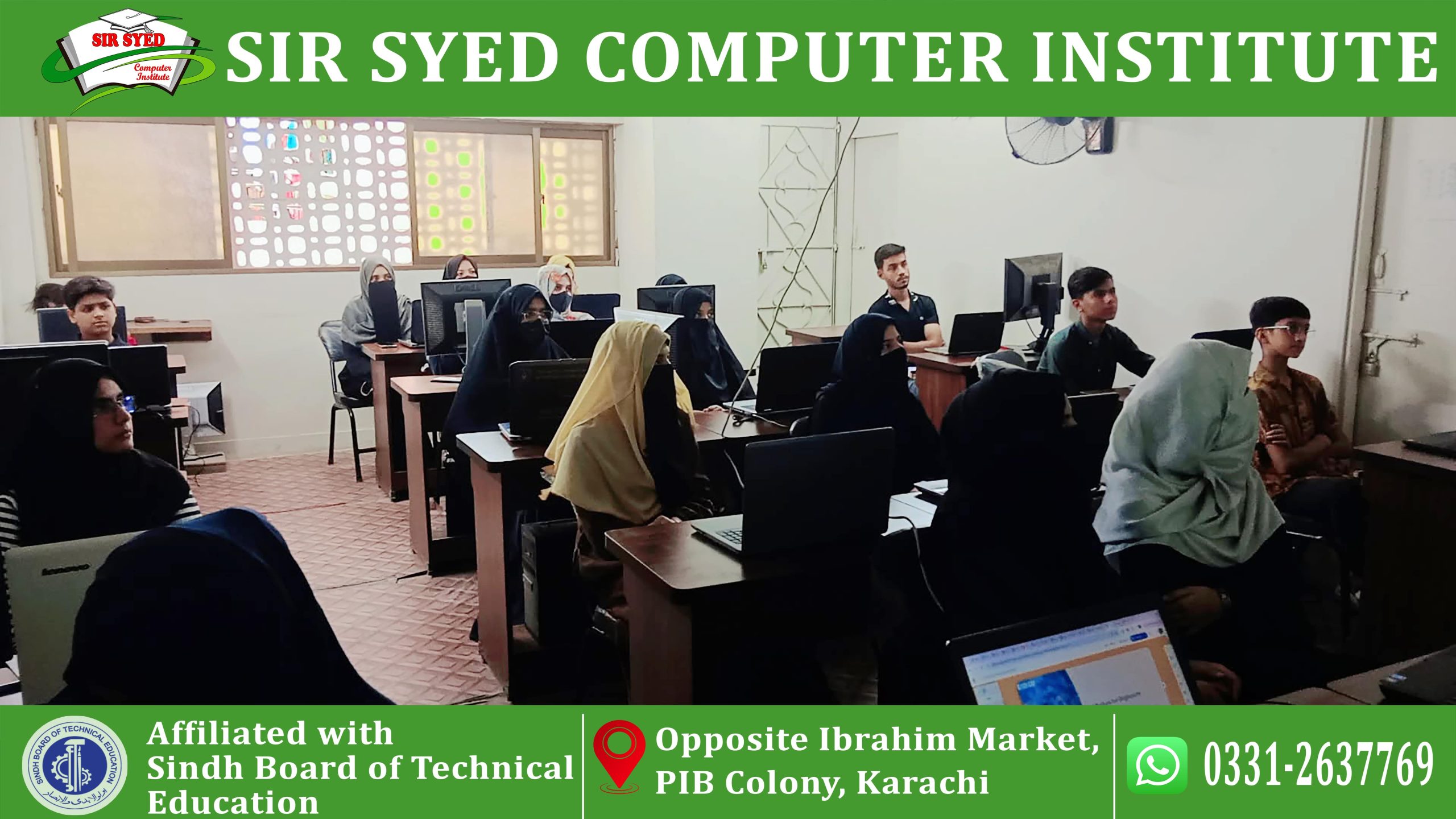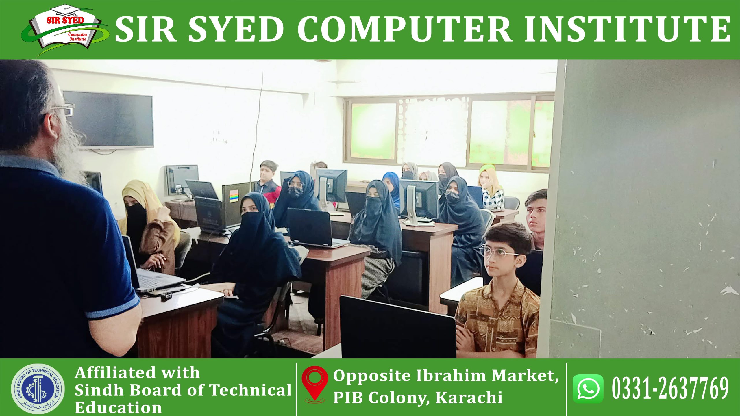 Sir Syed Computer Institute is a leading educational institution in Karachi, Pakistan, offering top-tier computer courses with expert instruction. We provide a wide range of programs, including Microsoft Office, Graphic Designing, and Web Development, aimed at enhancing your skills and advancing your career. Our courses are available at the Jamshed Road Campus (Morning Session), PIB Colony Campus (Evening Session), and Jamshed Road Campus (Weekend Classes on Saturday and Sunday). We also offer flexible online classes for global students.