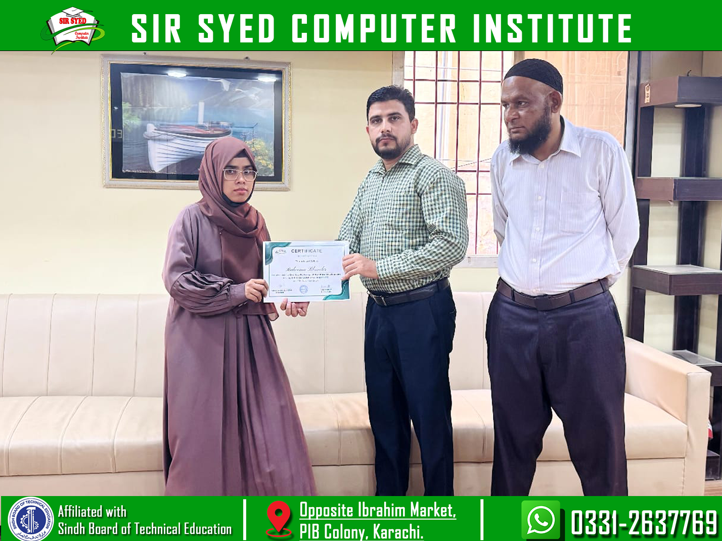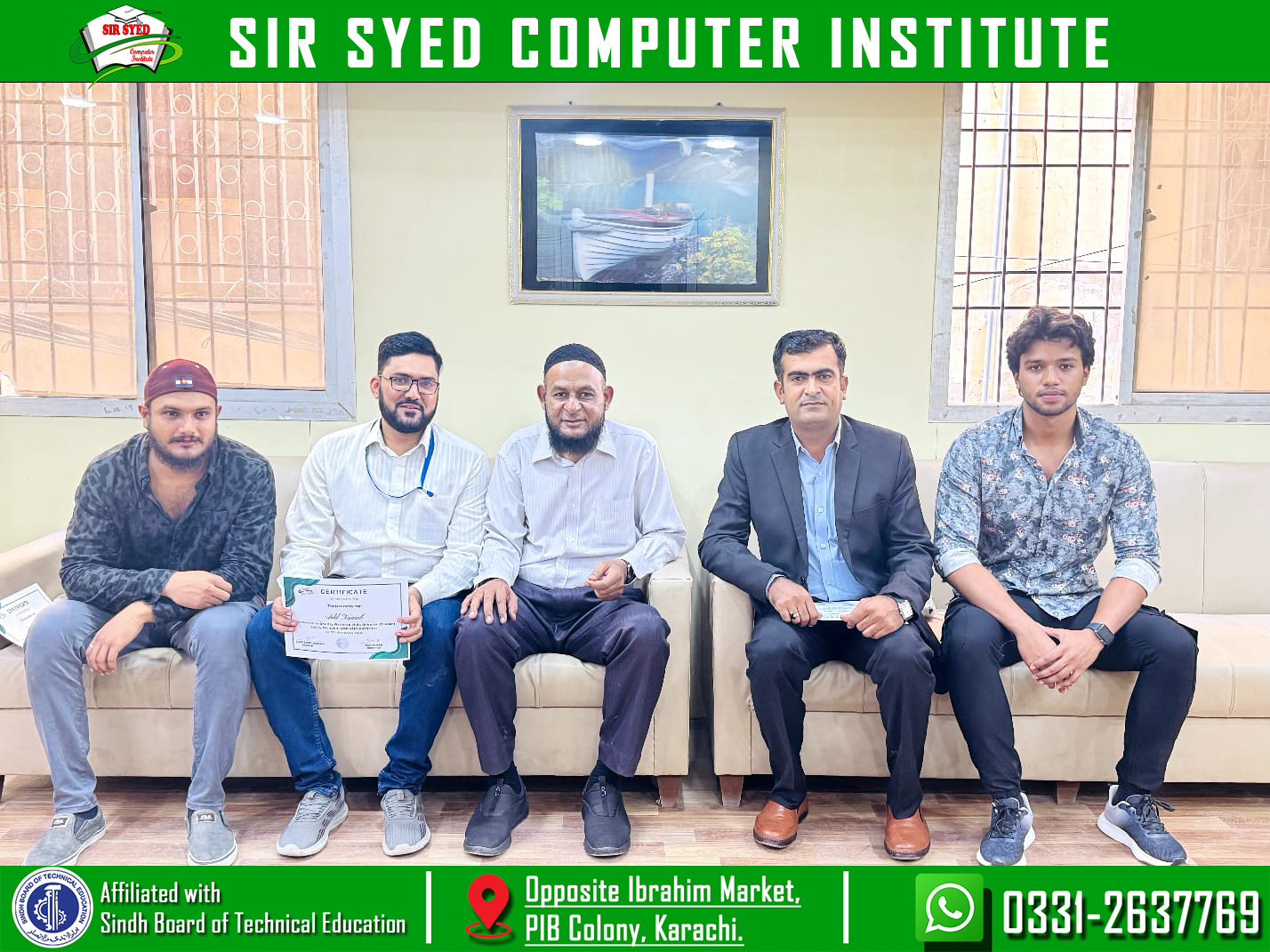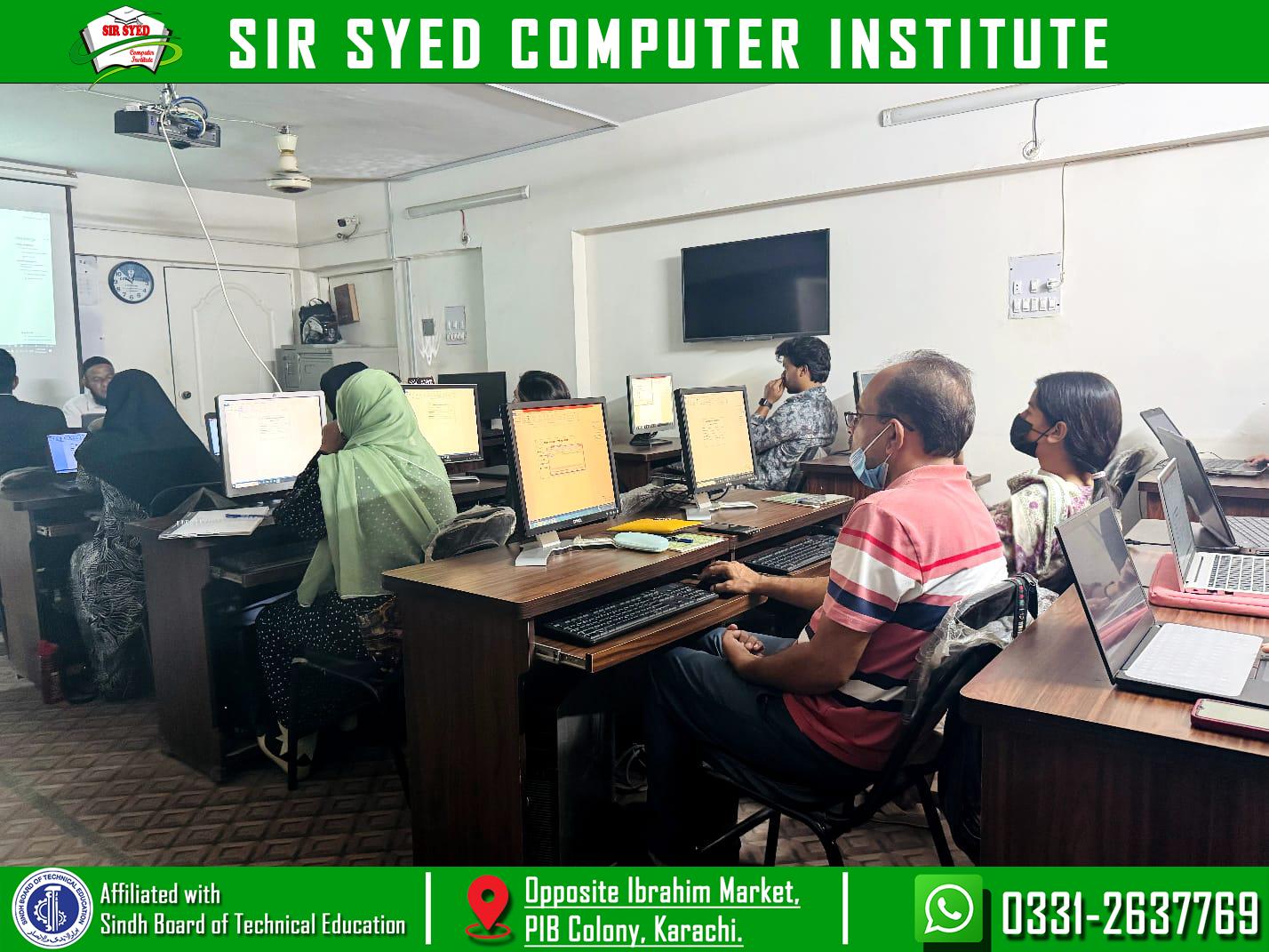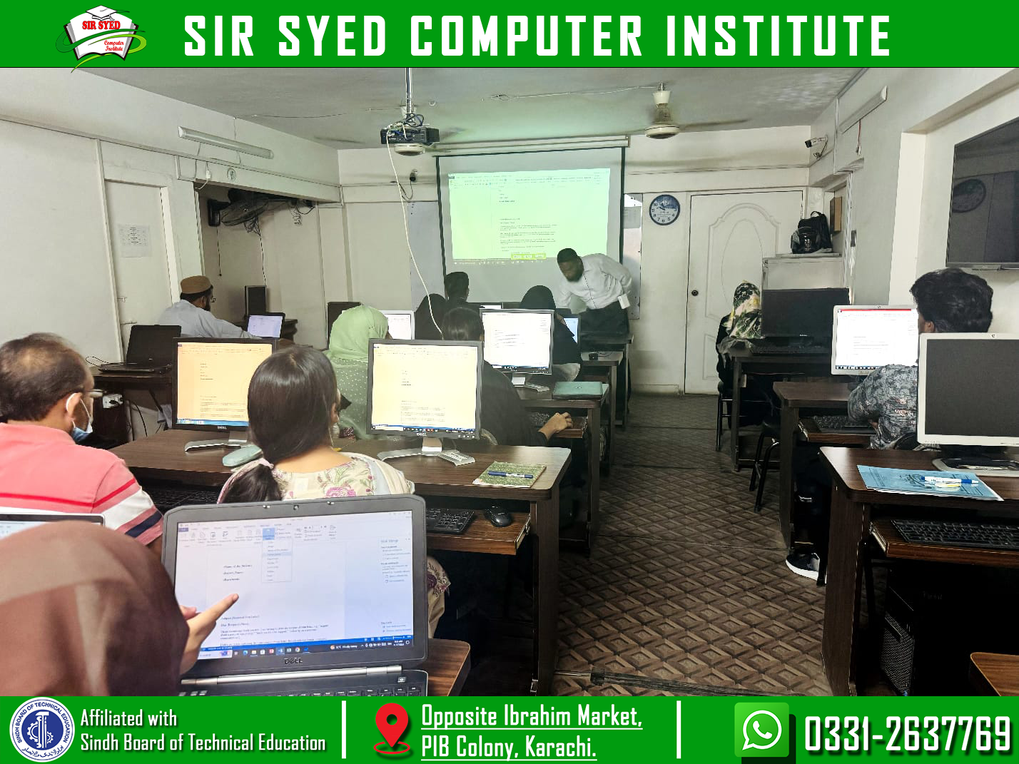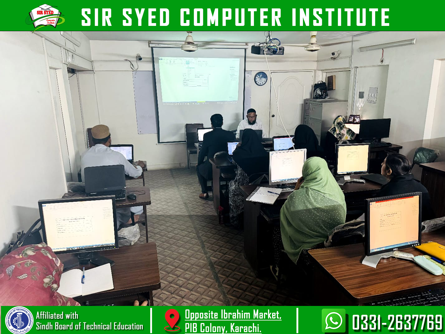 Sir Syed Computer Institute is a leading educational institution in Karachi, Pakistan, offering top-tier computer courses with expert instruction. We provide a wide range of programs, including Microsoft Office, Graphic Designing, and Web Development, aimed at enhancing your skills and advancing your career. Our courses are available at the Jamshed Road Campus (Morning Session), PIB Colony Campus (Evening Session), and Jamshed Road Campus (Weekend Classes on Saturday and Sunday). We also offer flexible online classes for global students.
