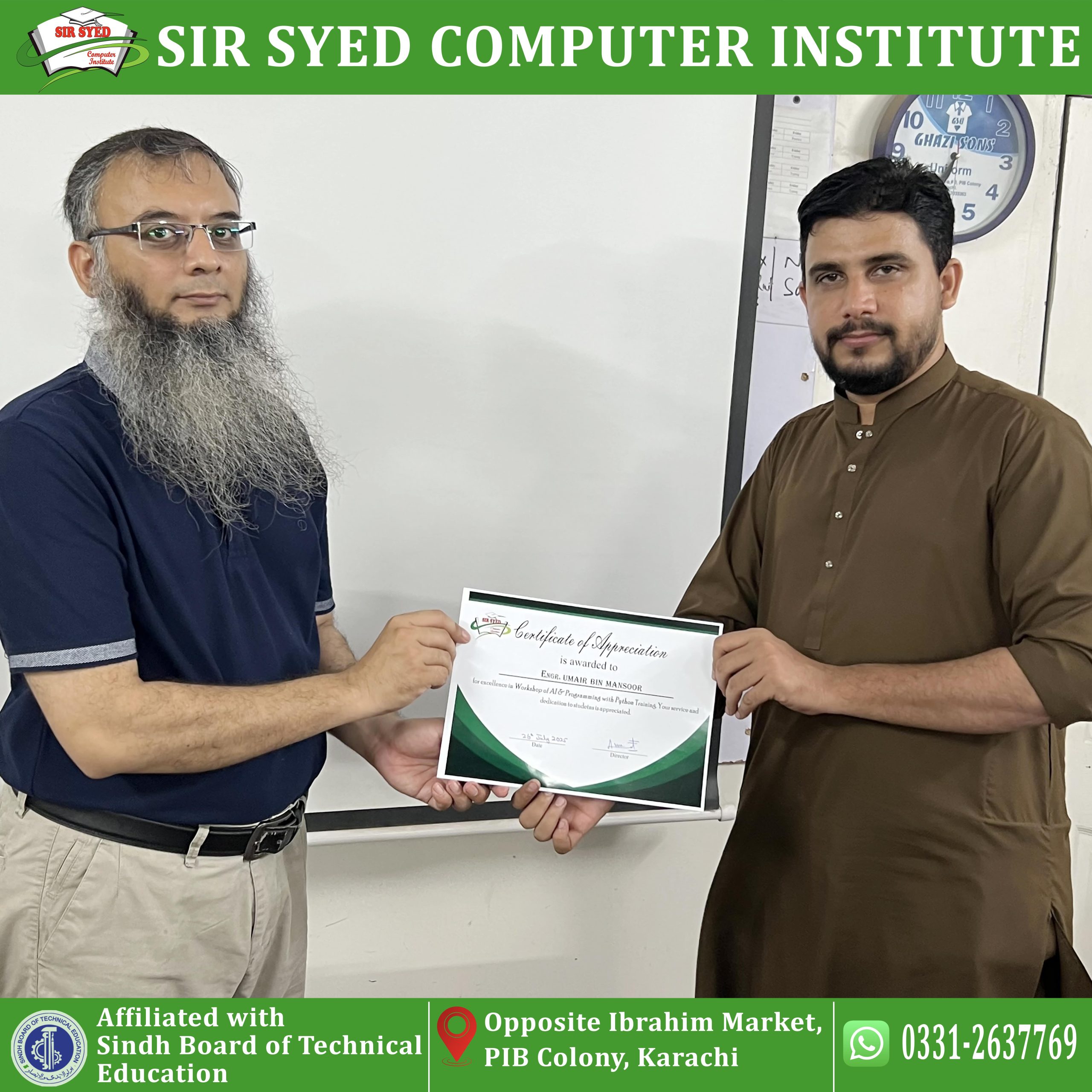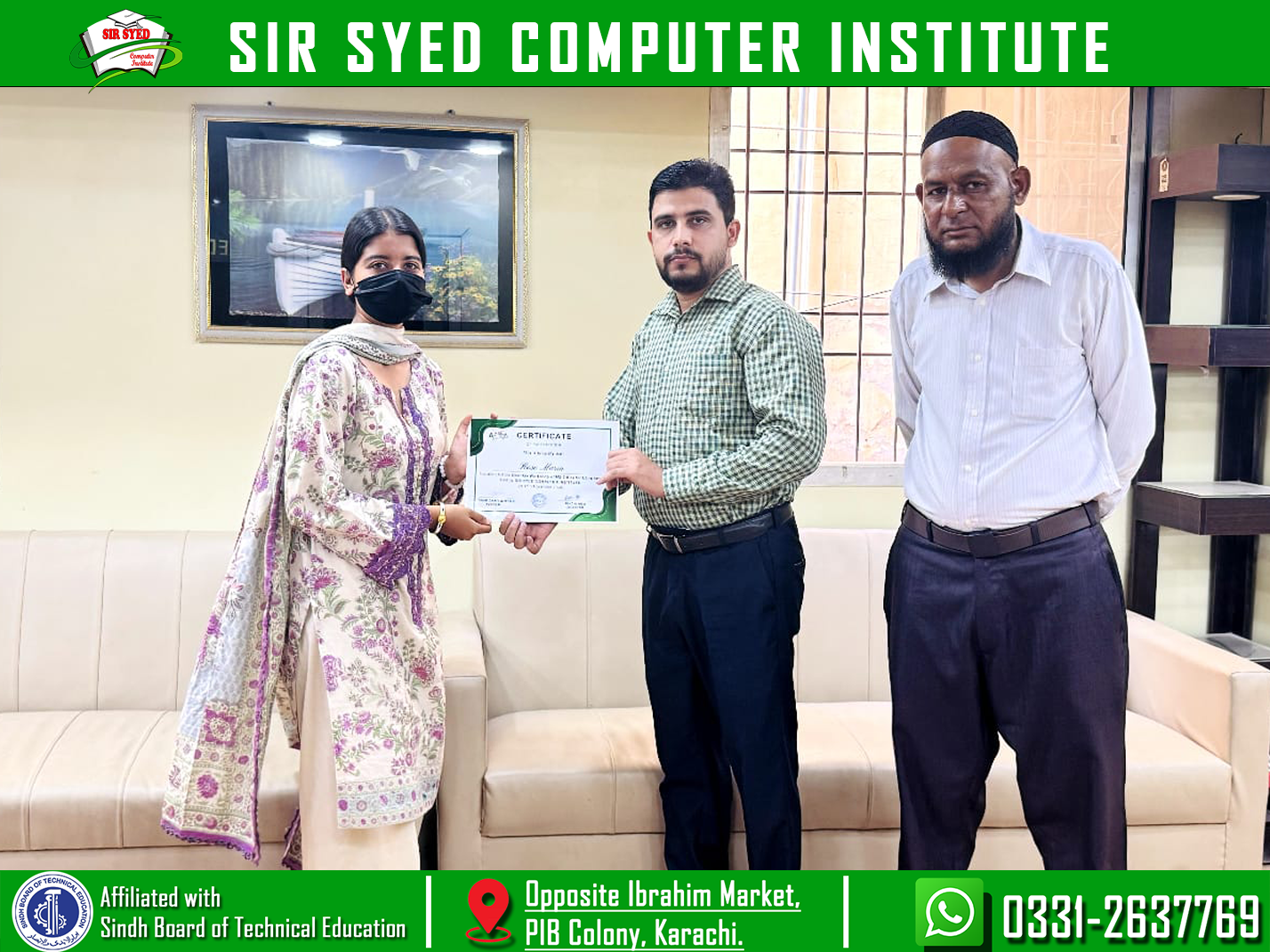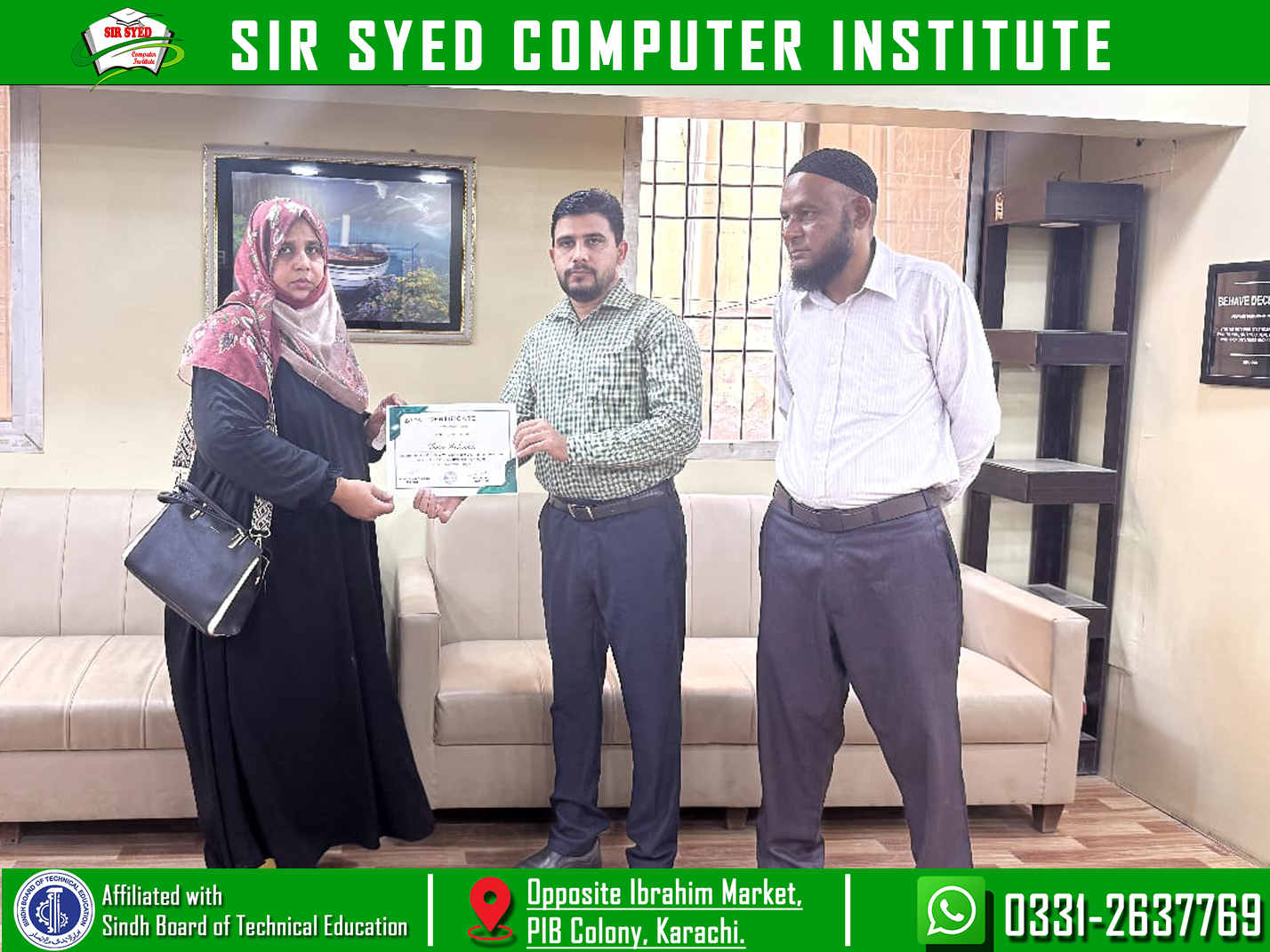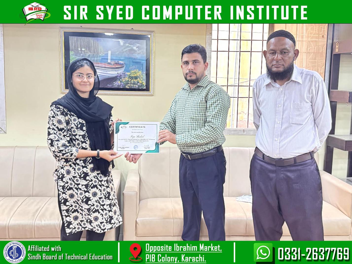 Sir Syed Computer Institute is a leading educational institution in Karachi, Pakistan, offering top-tier computer courses with expert instruction. We provide a wide range of programs, including Microsoft Office, Graphic Designing, and Web Development, aimed at enhancing your skills and advancing your career. Our courses are available at the Jamshed Road Campus (Morning Session), PIB Colony Campus (Evening Session), and Jamshed Road Campus (Weekend Classes on Saturday and Sunday). We also offer flexible online classes for global students.